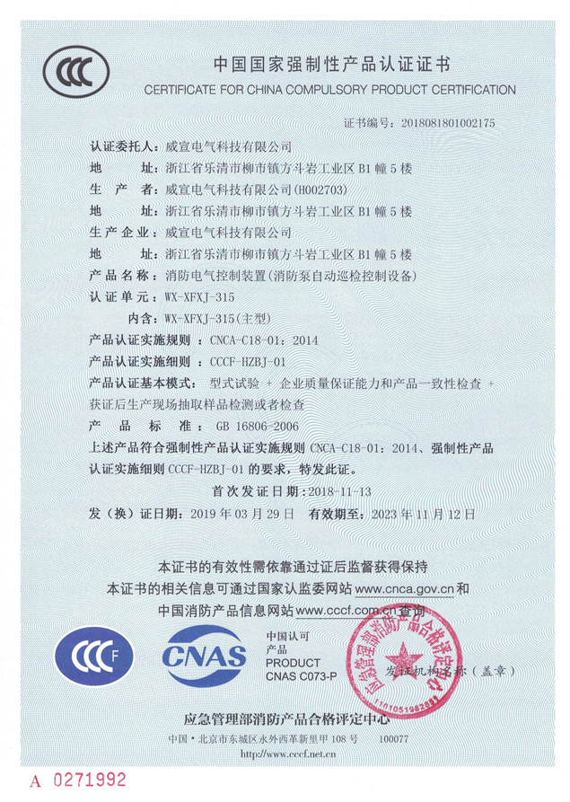 WX-XFKZ-22/30/315消防泵控制設(shè)備(CCC認(rèn)證)