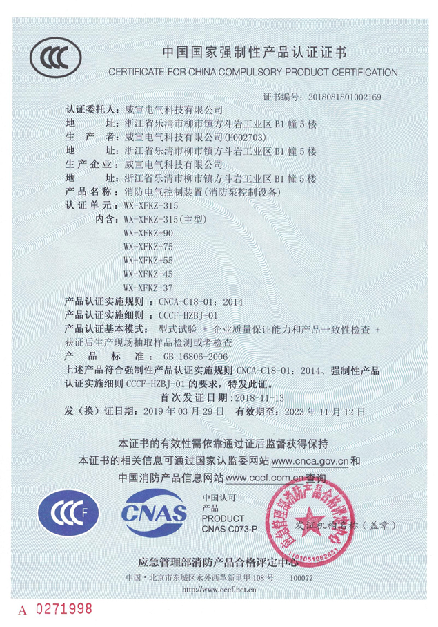 WX-XFKZ-37/45/55/75/90/315消防泵控制設(shè)備(CCC認(rèn)證)