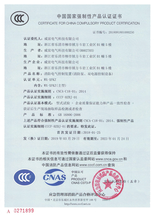 WX-XFKZ消防泵、雙電源控制設(shè)備(CCC認(rèn)證)